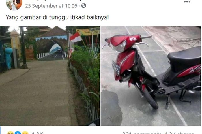 Dalam postingan pada hari Jumat (25/09) ditulis "Yang gambar di tunggu itikad baiknya!"