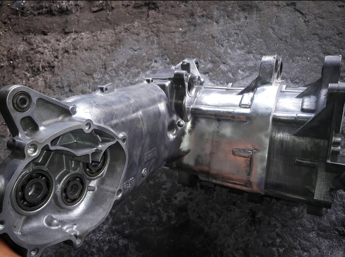 Jadi ada crankcase bawaan sisi kiri, kanan dan ditambah bagian crankcase kanan dari mesin baru.