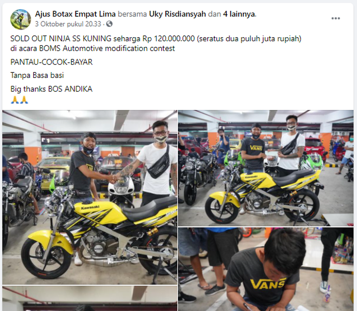 Kabar transaksi jual beli ini diuggah di Facebook Ajus Botax Empat Lima, Sabtu (3/10/2020).