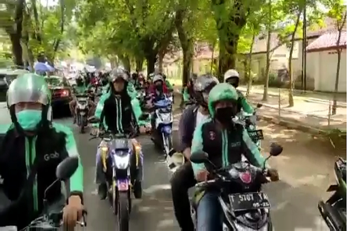 Sebagai bentuk penolakannya, puluhan driver ojol akhirnya turun ke jalan.