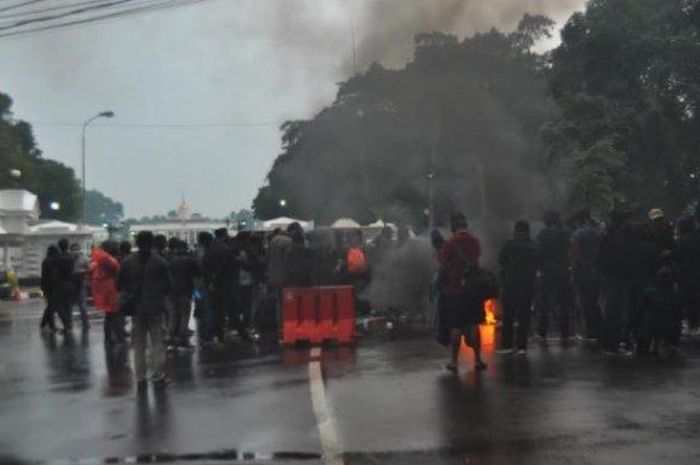Gridmotor.id - Gerbang istana Bogor dikepung asap dari ban yang dibakar mahasiswa saat demo Rabu (07/10) membuat pemotor harus balik arah.