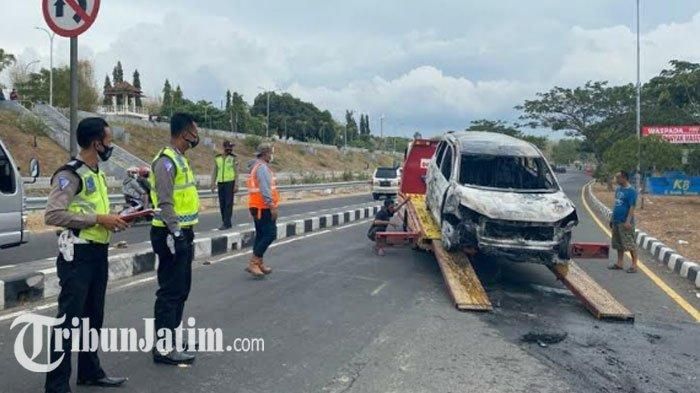 Ertiga berwarna putih dengan nopol M 1045 HJ yang dikendarai oleh Taufiq Hidayatullah (41) langsung terbakar.