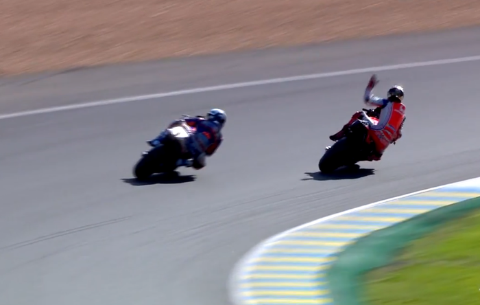 Pembalap Pramac Ducati itu, menurut Oliveira, justru membawa motornya ke arah Oliveira dan seperti ingin menabrakn dan membuatnya terjatuh.