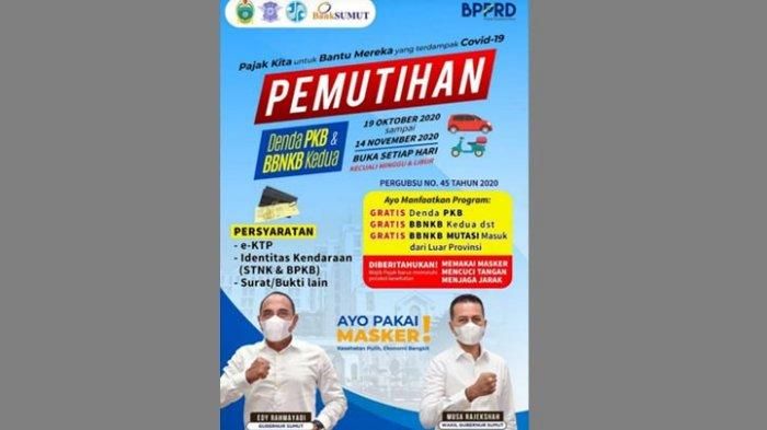 Gubernur Sumatera Utara Edy Rahmayadi memberlakukan pemutihan denda pajak kendaraan tahun 2020, yakni keringanan atas sanksi administratif Pajak Kendaraan Bermotor (PKB) dan Bea Balik Nama Kendaraan Bermotor (BBNKB) atas penyerahan kedua dan seterusnya.