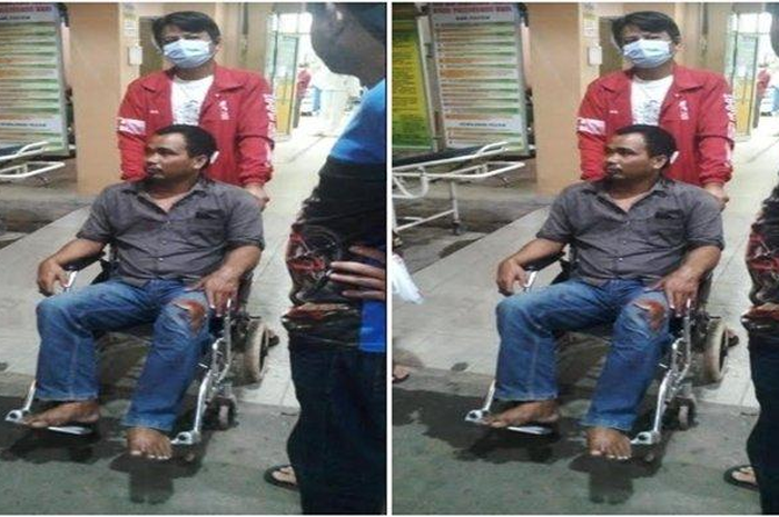 Akibat kejadian tersebut, Indra (40) harus dilarikan ke rumah sakit untuk diobati.