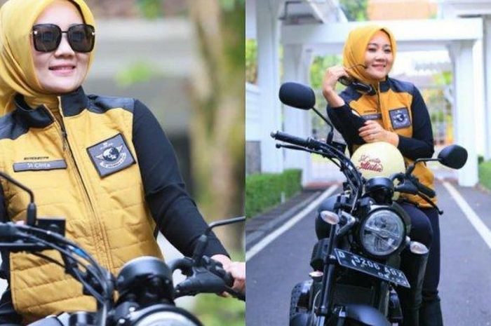 Istri Gubernur Jawa Barat terlihat memposting foto ootd (outfit of the day) bersama motor sport Yahama XSR 155 dan jaket yang nyentrik.