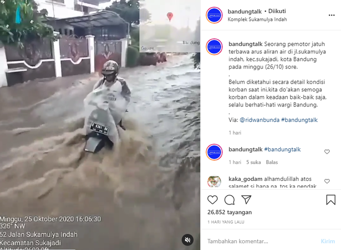 Mengutip dari keterangan, peristiwa itu terjadi di Jl. Sukamulya Indah, Kec. Sukajadi, Kota Bandung.