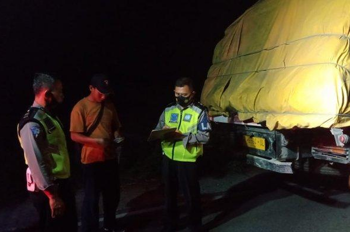 Truk yang dikemudikan oleh Muif (33) itu sedang parkir di lajur kiri karena mengalami ban bocor.