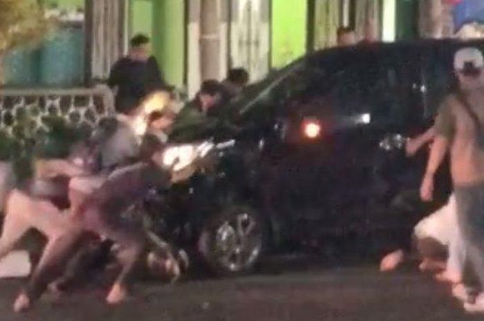 Saat itu juga mobil tersebut langsung menghantam dua motor sekaligus.