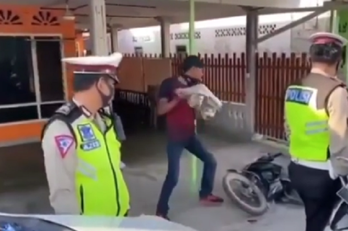 Ada-ada saja kelakuan pemotor saat ditilang polisi di jalan raya.