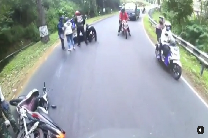 Bahkan helm milik salah satu pemotor pun sampai gelinding ke sisi kanan.
