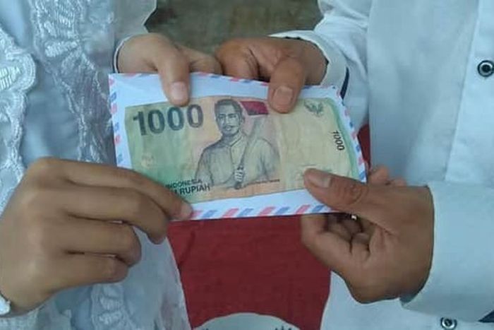 Dan ini membuat panik mempelai pria untuk mencari selembar uang Rp 1.000 yang masih mulus untuk mas kawin pernikahannya.