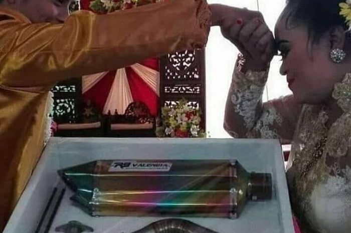 Pernikahan merupakan momen sakral bagi anak motor, saking sakralnya mas kawinannya knalpot racing.