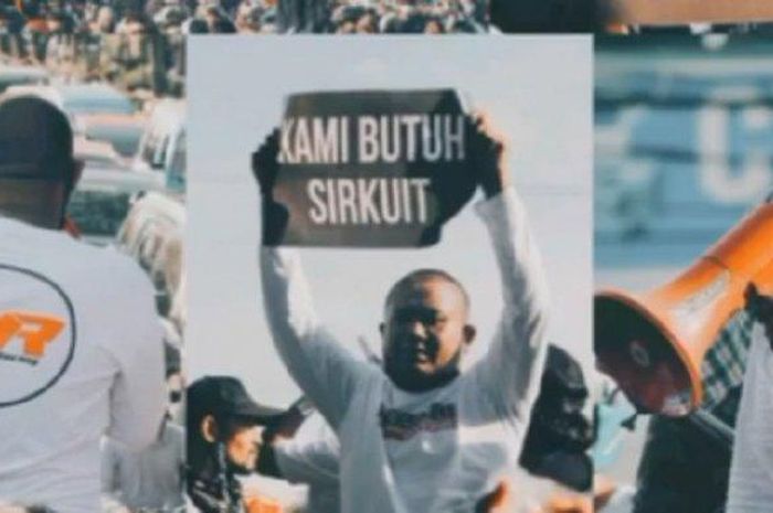 Terlihat spanduk-spanduk yang diusung bertuliskan “Kami Butuh Sirkuit”.