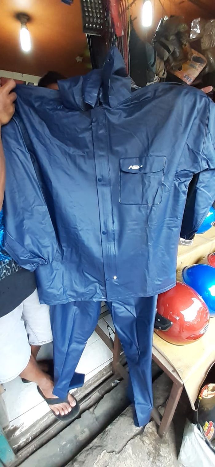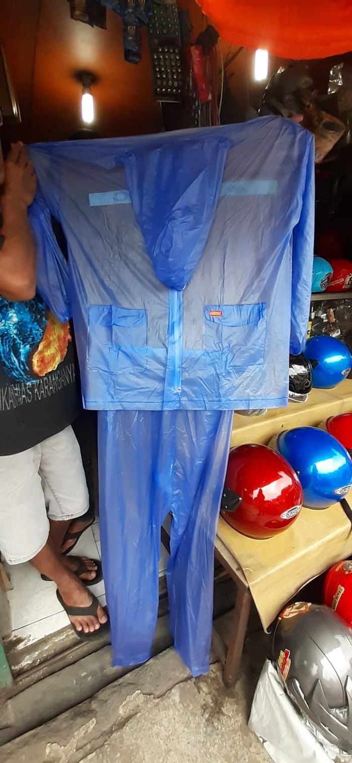 Jas hujan merek Elephant (setelan baju dan celana) bahan parasut Rp 80.000.