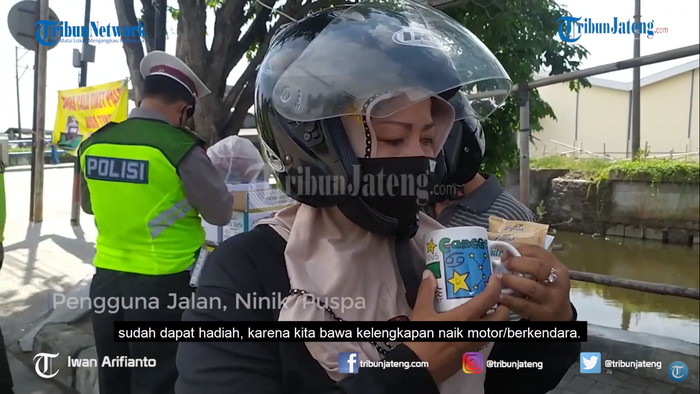 "Tadi sempat kaget saat dihentikan oleh petugas, setelah diperiksa surat-surat dan dinyatakan lengkap diberi hadiah," kata pengguna jalan, Ninik Puspa dikutip dari Tribunjateng.com.