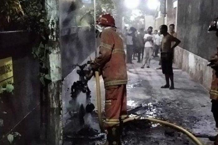 Gridmotor.id - Sebuah motor mendadak terbakar di sebuah gang pada Rabu (4/11/2020) malam, diduga milik penjual cilok.