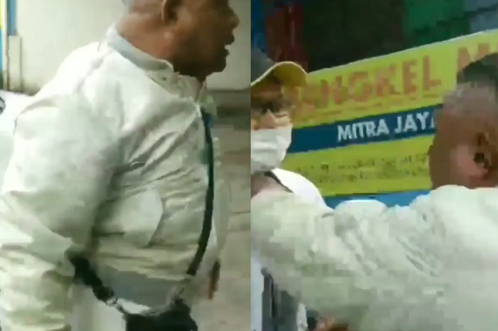 Pada video, terlhat pemotor yang memakai jaket krem melepas helm dan mengajak ribut pengemudi mobil yang memakai kaos putih.