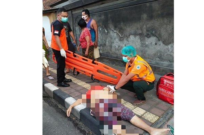 Ia ditabrak pemotor Honda Vario bernama I Nyoman Sudiarta (47).
