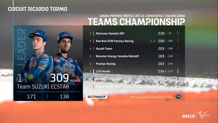 Sedangkan di urutan kedua ada tim Petronas Yamaha SRT dengan raihan 230 poin.