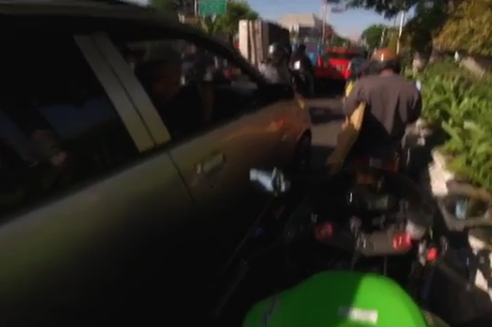 Saat itu di sebelahnya ada sebuah mobil, yang kemudian pengemudinya membuka kaca.