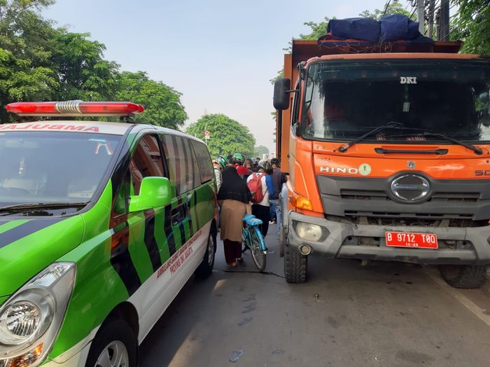 Kecelakaan kali ini melibatkan satu motor dan sebuah mobil truk sampah milik Pemprov DKI.