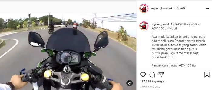 "Asal mula kejadian tersebut gara-gara ada mobil Isuzu Panther warna merah putar balik di tempat yang salah," tulisnya pada keterangan postingan.