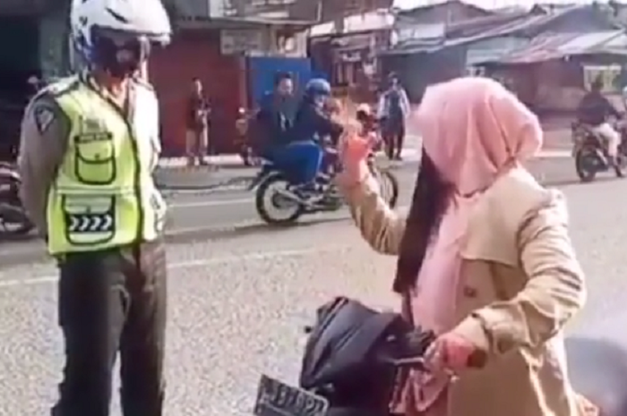 GridMotor.id - Beredar di media sosial video emak-emak pemotor enggak mau ditilang polisi, malah teriak takbir.