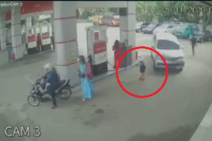 GridMotor.id - Viral di media sosial video seorang bocah terlindas mobil di pom bensin, orang tua naik motor lupa anaknya tertinggal.