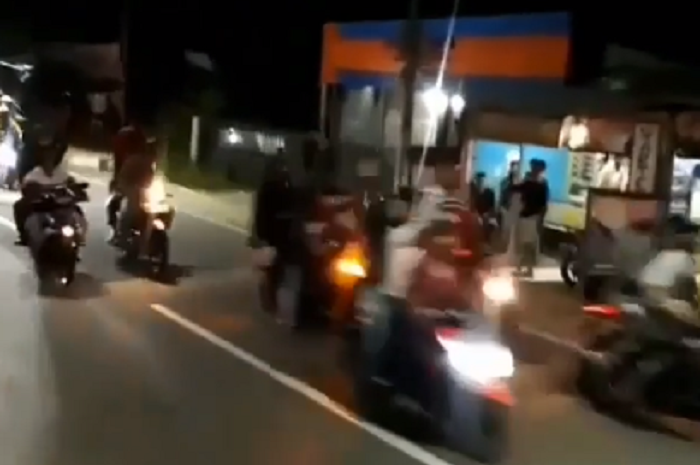 GridMotor.id - Beredar di media sosial video geng motor konvoi sambil tenteng senjata tajam di Bogor.
