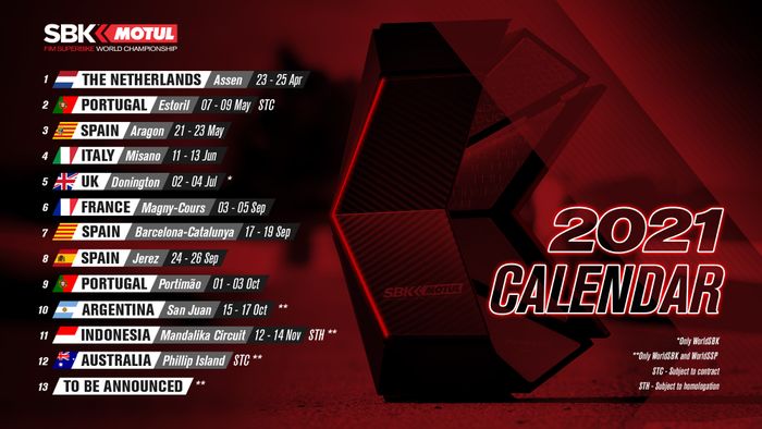 Sementara itu, sirkuit Mandalika rencananya akan menggelar WorldSBK 2021 pada tanggal 12-14 November 2021.