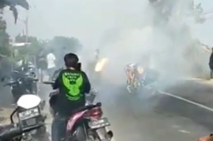 Mereka terlihat menggeber-geber motornya ditengah jalan.
