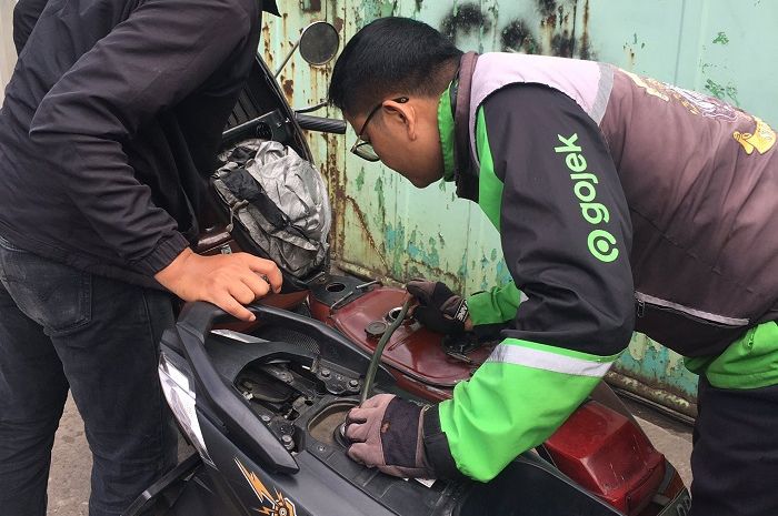 GridMotor.id - Driver ojol satu ini kasih bensin ke Vespa yang mogok, ikhlas enggak mau dibayar.