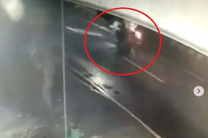 Tabrakan keduanya berhasil terekam kamera CCTV di sekitarannya.
