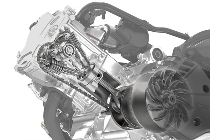 Mesin eSP+ Honda PCX 160 versi Jepang berkarakter overbore, dengan lingkar piston 60 mm dan langkah piston 55,5 mm.