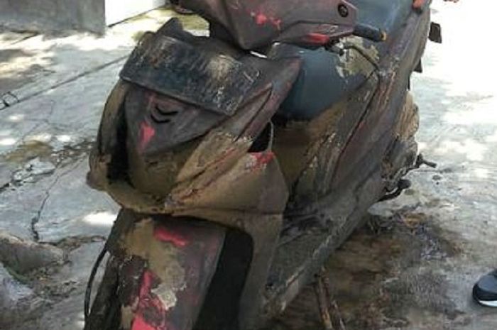 Kondisi motor matic ini terkelupas pada bagian bodi dan dipenuhi lumpur.