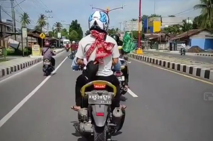 Dalam video ini pun terlihat pengendara motor lainnya mengibarkan bendera berwarna hijau.