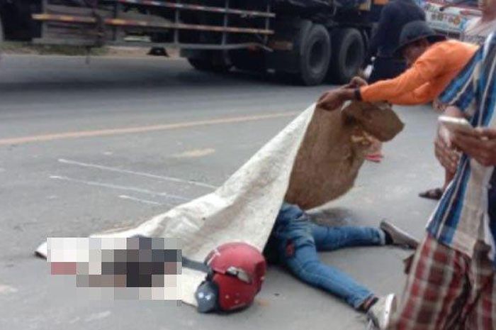 Pengendara motor tewas usai terlibat kecelakaan dengan sebuah kendaraan truk boks.