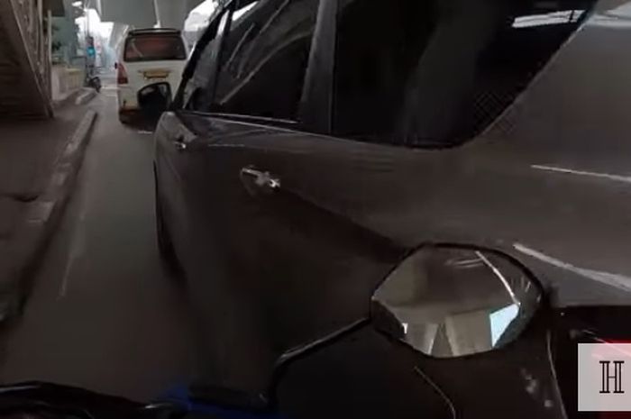 Namun tiba-tiba ada pemobil yang memotong laju pemotor tersebut dan mengambil jalur kiri.