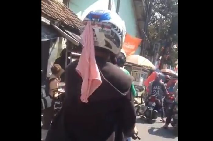 "Guys apa maksud guys ini? Cangcut nyangkut di helm. Kasihan tahu," ujar perekam video sembari tertawa.