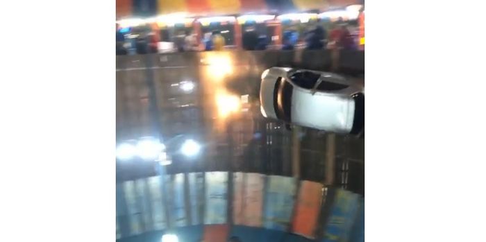 Mirip aksinya dengan motor, mobil tersebut juga berputar-putar di tong tersebut.