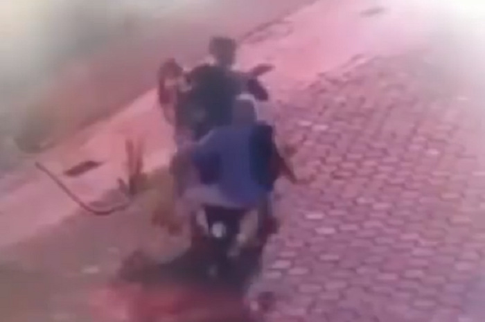 GridMotor.id - Honda Astrea bonceng tiga digas malah standing sampai boncenger jatuh terjungkal.