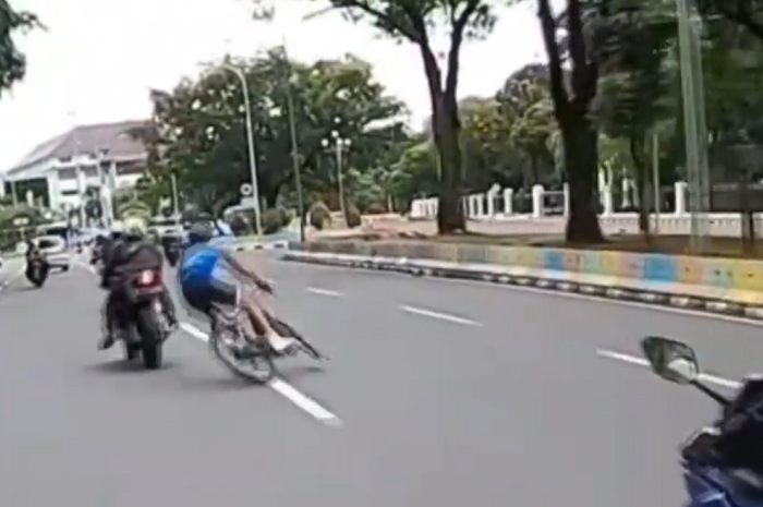 Gridmotor.id - Braaakk! Pemotor Yamaha R15 tabrak pesepeda sampai nyungsep di jalanan.