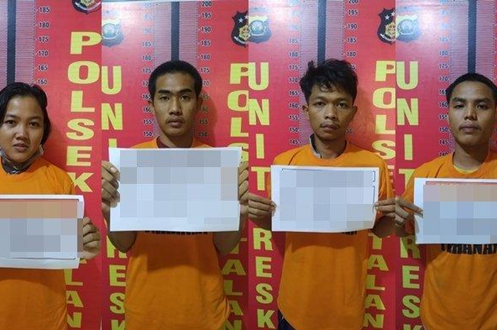 Keempat tersangka adalah Rentasi Anggraini (29), dan tiga rekan prianya Andi (21), Beby Arun (22), dan Rio Santri (19).