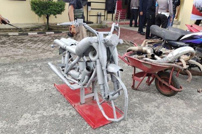 MOTOR Plus-online.com - Unik, knalpot brong hasil razia Satlantas Polres Tanjungbalai dijadikan motor.