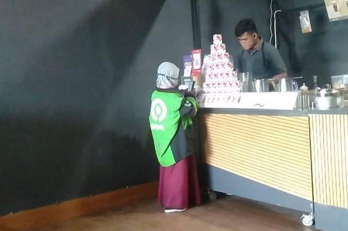 Bukan alasan anak perempuan itu memakai jaket ojol dan mengambil pesanan.