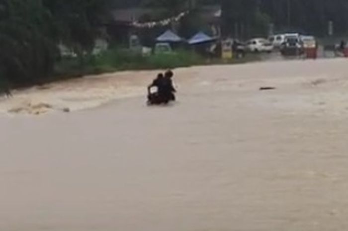 Gridmotor.id - Viral video pemotor nekat terobos banjir besar.