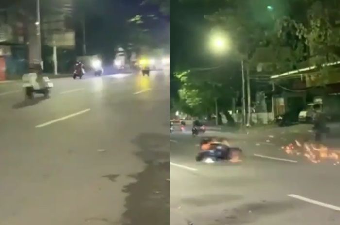 Gridmotor.id - Rombongan Vespa kebut-kebutan akhirnya cium aspal.