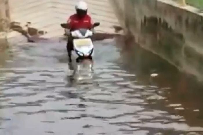 Skuter listrik ini dengan ketangguhannya mampu melibas banjir dan bisa melewatinya dengan sempurna.