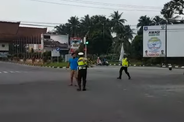 GridMotor.id - Beredar di media sosial video polisi ditendang kungfu pemotor di Bangka Belitung, ada anak kecil teriak nangis.